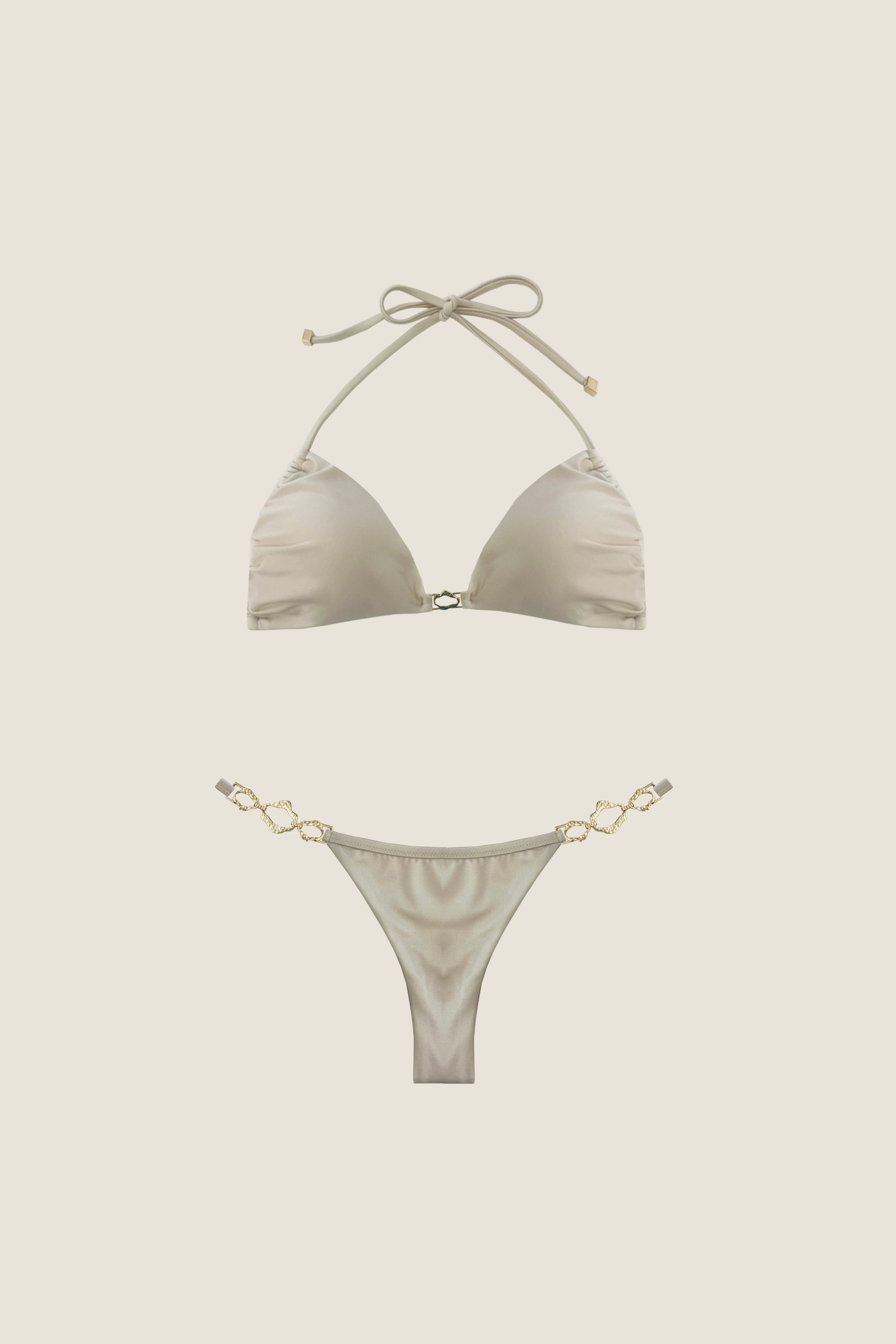 Con coppe regolabili e laccetti sottili, questo due pezzi garantisce una vestibilità personalizzabile e un tocco minimale sempre chic.
